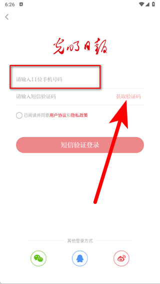 2、在主界面右上角,點(diǎn)擊登錄入口,進(jìn)入手機(jī)號(hào)登錄界面。