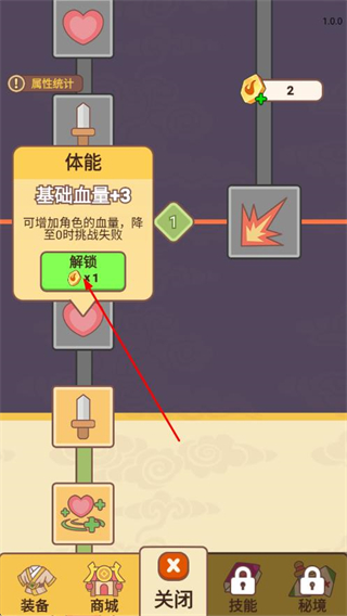 4、查看屬性統(tǒng)計(jì)界面,確認(rèn)基礎(chǔ)血量等屬性的提升,完成天賦技能的升級(jí)操作。