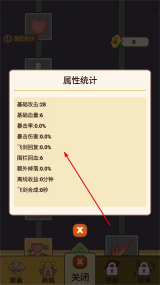 屬性統(tǒng)計(jì)功能很實(shí)用,玩家可以隨時(shí)查看基礎(chǔ)攻擊、血量、暴擊率等詳細(xì)屬性。通過屬性統(tǒng)計(jì),玩家能清晰了解自己的戰(zhàn)力情況,便于調(diào)整飛劍合成和天賦升級(jí)策略。