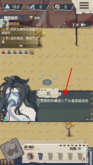 1、進(jìn)入游戲后,明確逃生目標(biāo)為撐到車棚進(jìn)入下水道,這是推進(jìn)主線的關(guān)鍵操作,可圍繞該目標(biāo)制定策略。