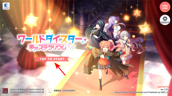 1、進(jìn)入游戲后,點(diǎn)擊TAP TO START按鈕,這是開啟游戲的關(guān)鍵操作,點(diǎn)擊后可進(jìn)入游戲主界面,開始偶像養(yǎng)成。