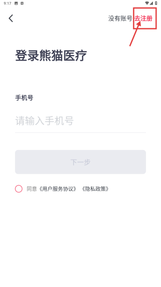 3、在登錄界面,點(diǎn)擊去注冊(cè)選項(xiàng),進(jìn)入注冊(cè)頁(yè)面。