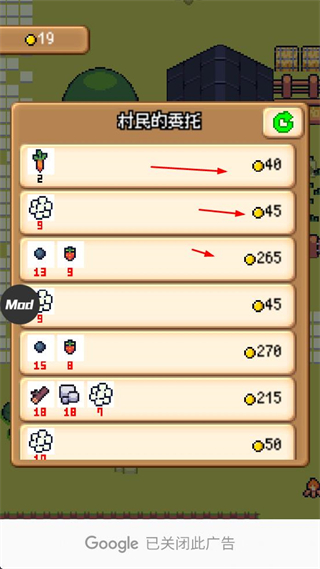 2、接收村民的委托,提交對(duì)應(yīng)的資源,獲取金幣獎(jiǎng)勵(lì)。