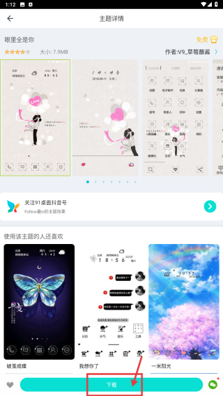 4、在主題詳情頁,點擊下載按鈕,完成該主題的下載操作。