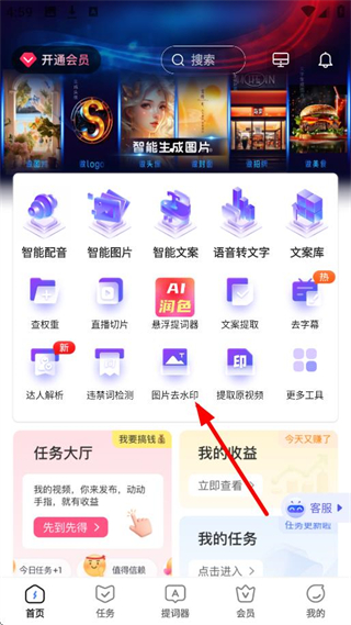 1、在APP首頁(yè),點(diǎn)擊圖片去水印,進(jìn)入圖片擦除頁(yè)面。