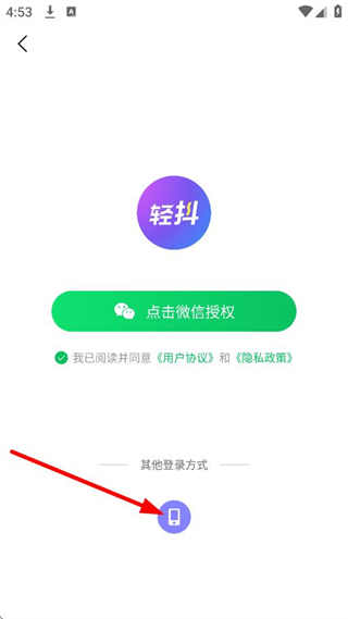 3、在登錄方式選擇頁面,點(diǎn)擊手機(jī)號(hào)登錄圖標(biāo),進(jìn)入手機(jī)號(hào)快捷登錄頁面。