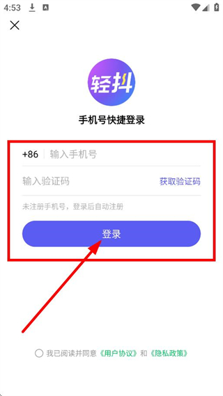 4、輸入手機(jī)號(hào),點(diǎn)擊獲取驗(yàn)證碼并輸入驗(yàn)證碼,點(diǎn)擊登錄,完成賬號(hào)登錄。