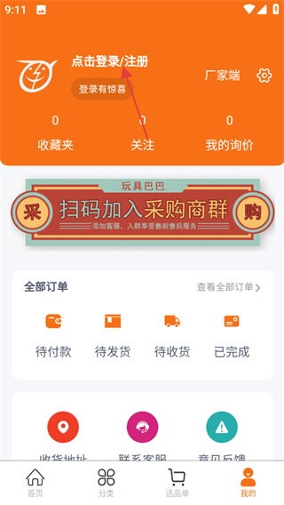 1、打開玩具巴巴,點擊頁面右下角我的,可進入個人中心頁面。
