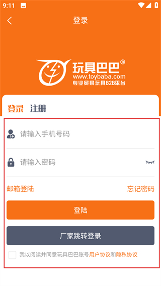 3、在登錄頁面,輸入信息,同意協(xié)議后點擊登陸可完成賬號登錄。