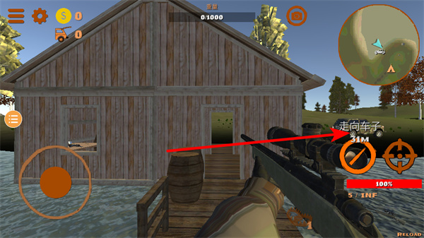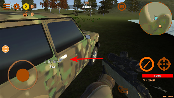 3、依照指引向車輛移動,通過虛擬搖桿操控角色走位,注意保持移動方向的準確性,逐步接近目標。