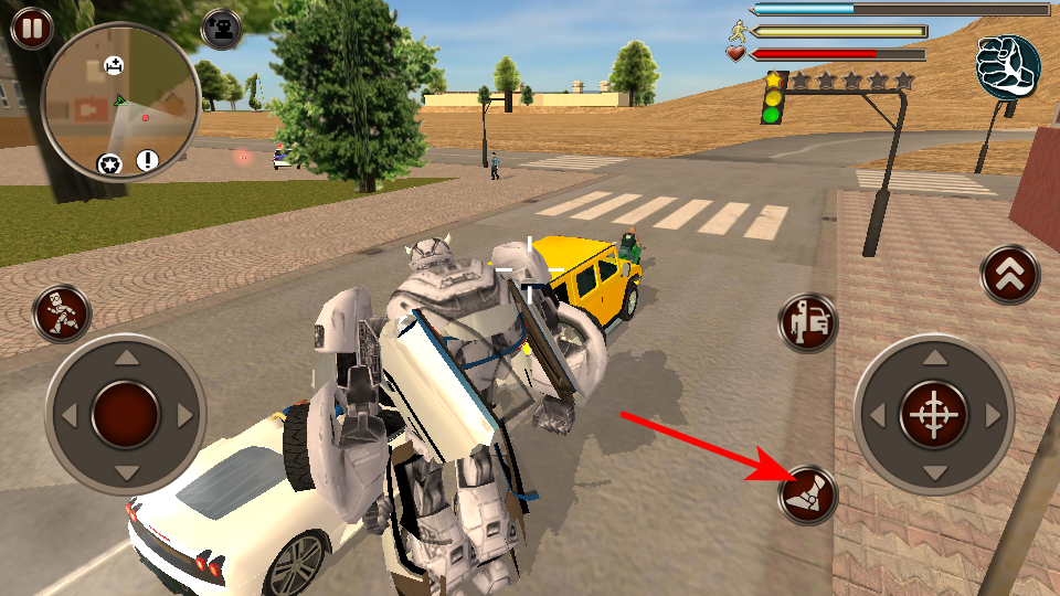 4、點擊變形按鈕,可切換角色形態(tài)如機器人變車輛,形態(tài)切換能提升移動效率或戰(zhàn)斗能力,是特色玩法。