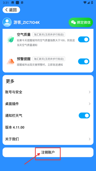 2、在個人中心頁面,點擊注銷賬戶選項,彈出注銷提示框。