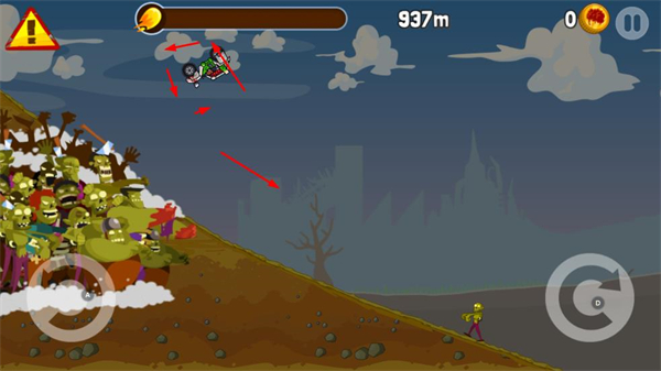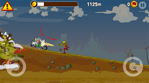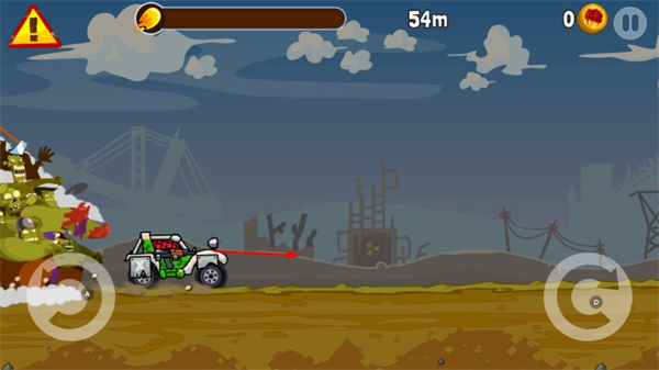1、操控車輛在地形中行駛,留意前方障礙與僵尸,保持行駛節(jié)奏,爭(zhēng)取提升行駛距離。