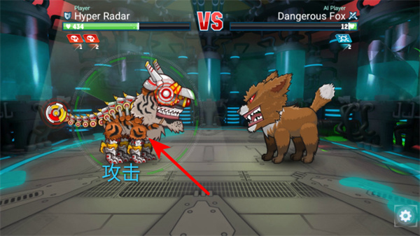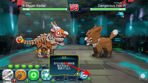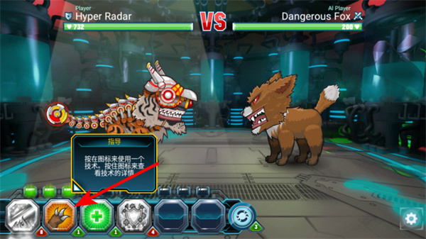 1、在戰(zhàn)斗界面,點擊下方的技能按鍵,可使用對應技能攻擊敵方Dangerous Fox,提升戰(zhàn)斗傷害。