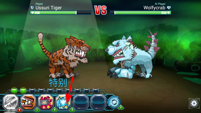 4、在戰(zhàn)斗界面,點(diǎn)擊下方的特別技能按鍵,可使用特殊技能,提升戰(zhàn)斗能力以應(yīng)對敵方。