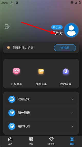 2、在個人頁面,點擊游客,進(jìn)入登錄注冊頁面。