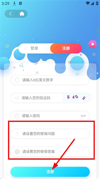 5、設(shè)置密保問題和答案后點擊注冊,完成賬號注冊操作。