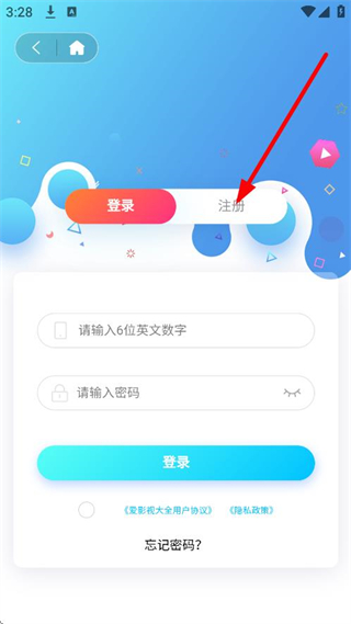 3、在登錄注冊頁面,點擊注冊,進(jìn)入注冊頁面。