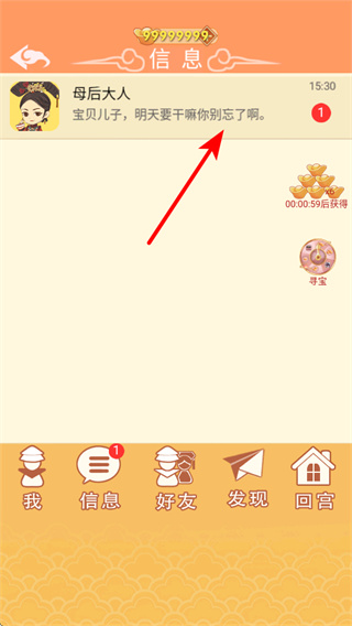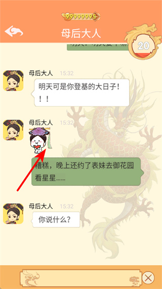 2、在信息界面,留意母后大人的消息提示,點擊進入可查看宮廷劇情對話,推進角色在宮廷中的發(fā)展。