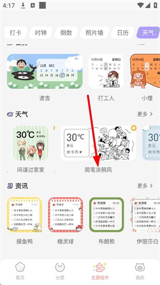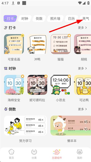 2、在主題組件頁(yè)面,點(diǎn)擊天氣,進(jìn)入天氣組件分類頁(yè)面。