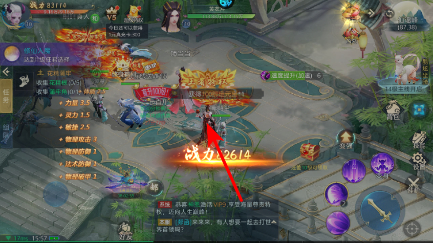 3、在游戲場景中,留意戰(zhàn)力提升提示,跟隨游戲引導(dǎo)進(jìn)行操作,可快速提升角色戰(zhàn)力,增強(qiáng)角色戰(zhàn)斗能力。