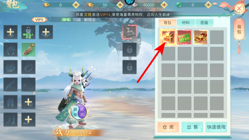 4、在背包界面,點(diǎn)擊獲得的寶物道具,可使用或查看其詳情,合理利用背包內(nèi)的資源,為角色戰(zhàn)斗提供支持。