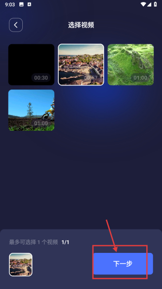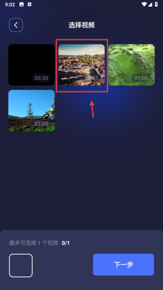 2、在視頻選擇頁面,選擇需要轉(zhuǎn)換格式的視頻,完成視頻選取操作。
