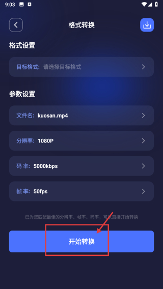 4、在格式轉(zhuǎn)換設置頁,點擊開始轉(zhuǎn)換按鈕,啟動視頻格式轉(zhuǎn)換流程。