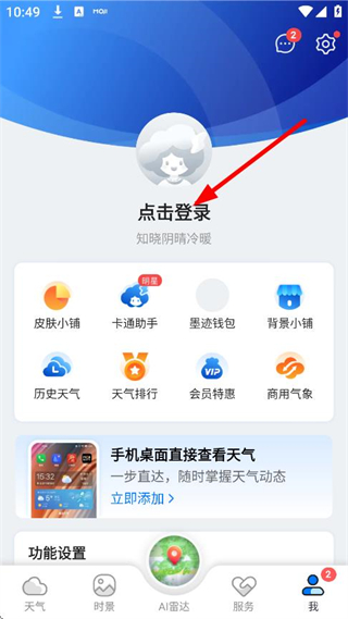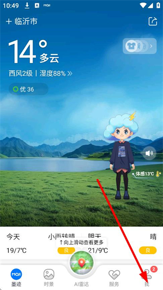 1、在墨跡天氣的頁面,點擊底部的我,進(jìn)入個人頁面。