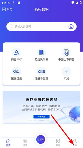 1、在數(shù)據(jù)庫頁面,點擊底部我的,進入個人頁面。