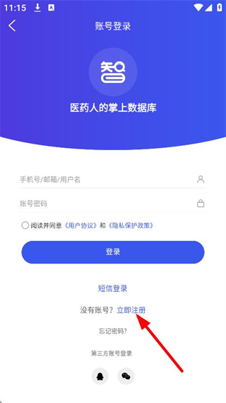 3、在賬號登錄頁面,點擊立即注冊,進入快速注冊頁面。