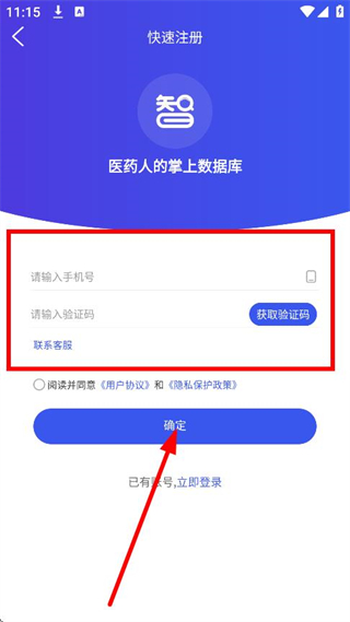 4、在快速注冊頁面,輸入手機與驗證碼,點擊確定,完成賬號注冊操作。