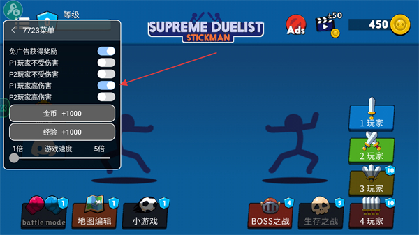 火柴人至高對決內(nèi)置作弊菜單是一款經(jīng)典火柴人形象的冒險對戰(zhàn)類作品,經(jīng)修改破解后搭載輔助菜單,玩家可獲得無限金幣、變大藥水、爆炸綠藥水等特殊道具,輕松實現(xiàn)武器技能進階,玩家能選擇專屬火柴人參與挑戰(zhàn),體驗與敵人近距離搏擊的強烈戰(zhàn)斗感受,憑借爽快的對戰(zhàn)節(jié)奏與豐厚的輔助福利,帶來酣暢淋漓的冒險對戰(zhàn)體驗。