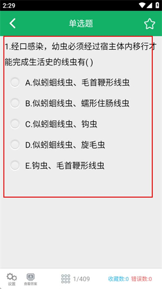 4、在答題界面,分析各個選項的含義,進行單選題的作答練習。