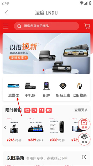 2、在該頁面,點(diǎn)擊流媒體可進(jìn)入全屏流媒體商品列表頁面。