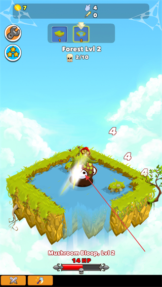 1、在場(chǎng)景中點(diǎn)擊怪物進(jìn)行攻擊,擊敗怪物可獲得金幣和經(jīng)驗(yàn),提升關(guān)卡等級(jí)如森林等級(jí)2、3、4。