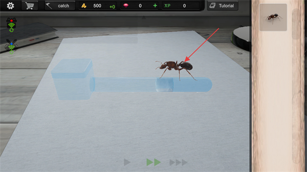 3、找到背包中購買到的螞蟻,拖動它放到試管當(dāng)中。