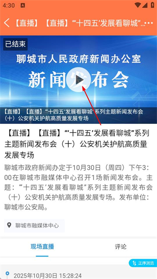 3、在播放頁面點擊播放鍵可觀看直播回放內(nèi)容,還可參與評論互動。
