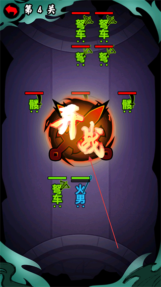 1、在第4關(guān)開始前,查看敵方陣容弩車、髏等和己方陣容弩車、火勇、爆龜,點擊開戰(zhàn)進入戰(zhàn)斗。