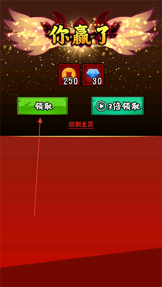 4、消滅所有敵方單位后,即可獲勝,獲得金幣和鉆石獎勵,點擊領(lǐng)取獲取獎勵,也可選擇3倍領(lǐng)取獲得更多資源,用于提升己方角色實力。