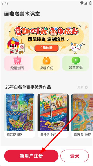 2、在畫啦啦美術(shù)課堂頁面,點擊新用戶注冊,進入登錄頁面。