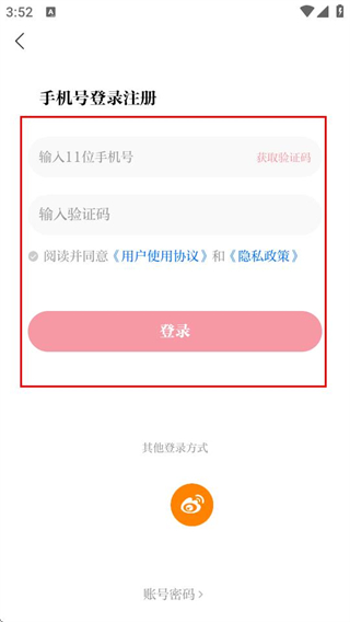 3、在該頁面,輸入信息,同意協(xié)議后點擊登錄可完成賬號登錄。