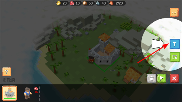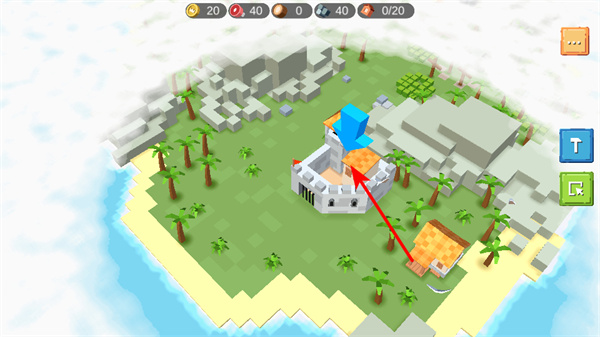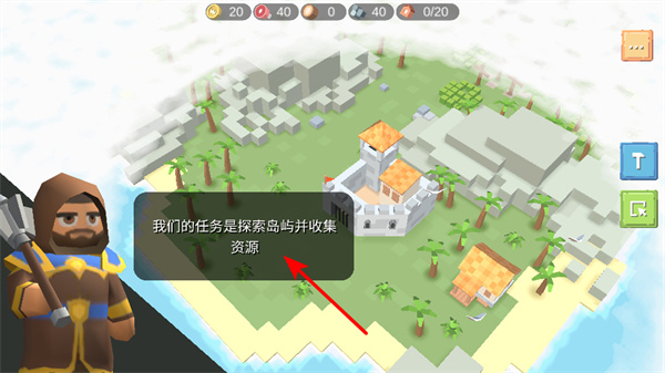 4、點擊右側(cè)T按鈕,可開啟相關功能界面,如建筑編輯、資源管理等,利用該功能優(yōu)化島嶼的建設和資源利用,推動游戲進程。