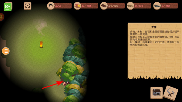 1、游戲初期,關(guān)注篝火區(qū)域,篝火是居民生存和活動(dòng)的重要據(jù)點(diǎn),圍繞篝火開展建設(shè)和資源收集,保障居民的基本生存需求。