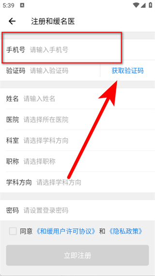 3、在注冊(cè)頁面,輸入手機(jī)號(hào),點(diǎn)擊獲取驗(yàn)證碼。