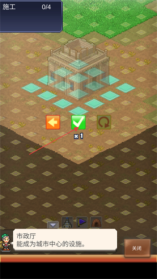 4、拖動(dòng)市政廳,尋找在城鎮(zhèn)中除綠草地外的空地上點(diǎn)擊綠色勾勾確定建造位置。
