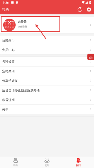 1、打開閱讀類APP,點(diǎn)擊底部我的選項(xiàng),進(jìn)入個(gè)人中心頁面。