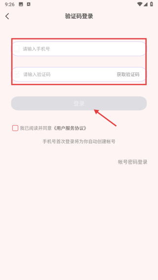 4、在驗(yàn)證碼登錄頁面,填寫手機(jī)號(hào),獲取并輸入驗(yàn)證碼,勾選同意協(xié)議后點(diǎn)擊登錄按鈕,完成賬號(hào)登錄操作。