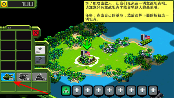 1、游戲初始階段,點擊自己的基地,選擇坦克按鈕制造坦克,是攻占敵人基地的核心單位,優(yōu)先生產(chǎn)以開啟進攻流程。