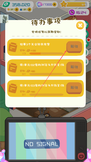 2、完成待辦事項如招募失業(yè)游民房客,可獲取金幣等獎勵,點擊前往推進任務。